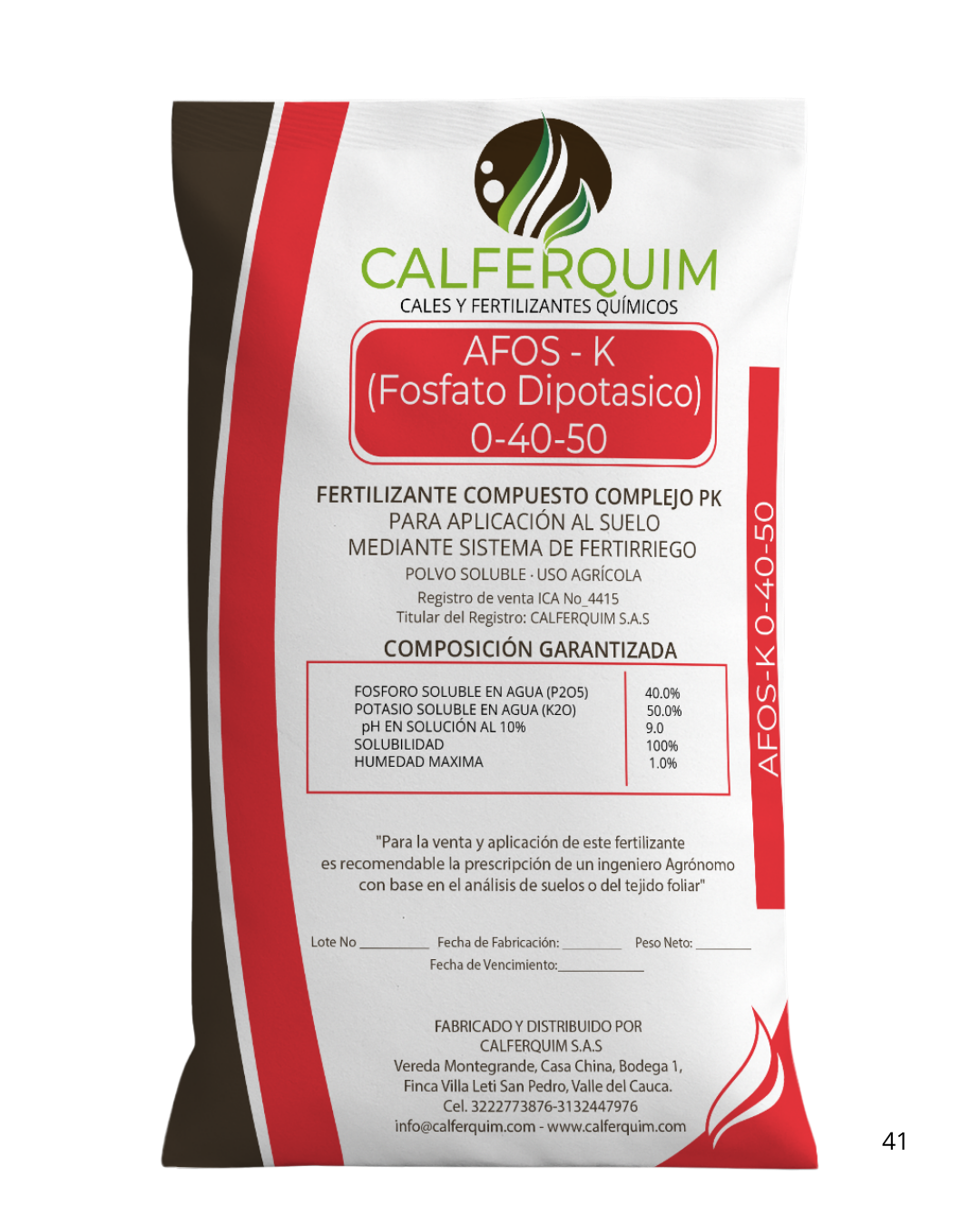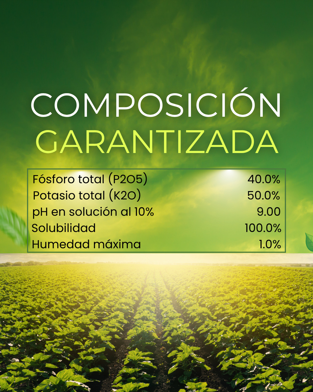 fuente de fósforo (P₂O₅) y potasio (K₂O), libre de cloro, nitrógeno y metales pesados. Su uso en agricultura