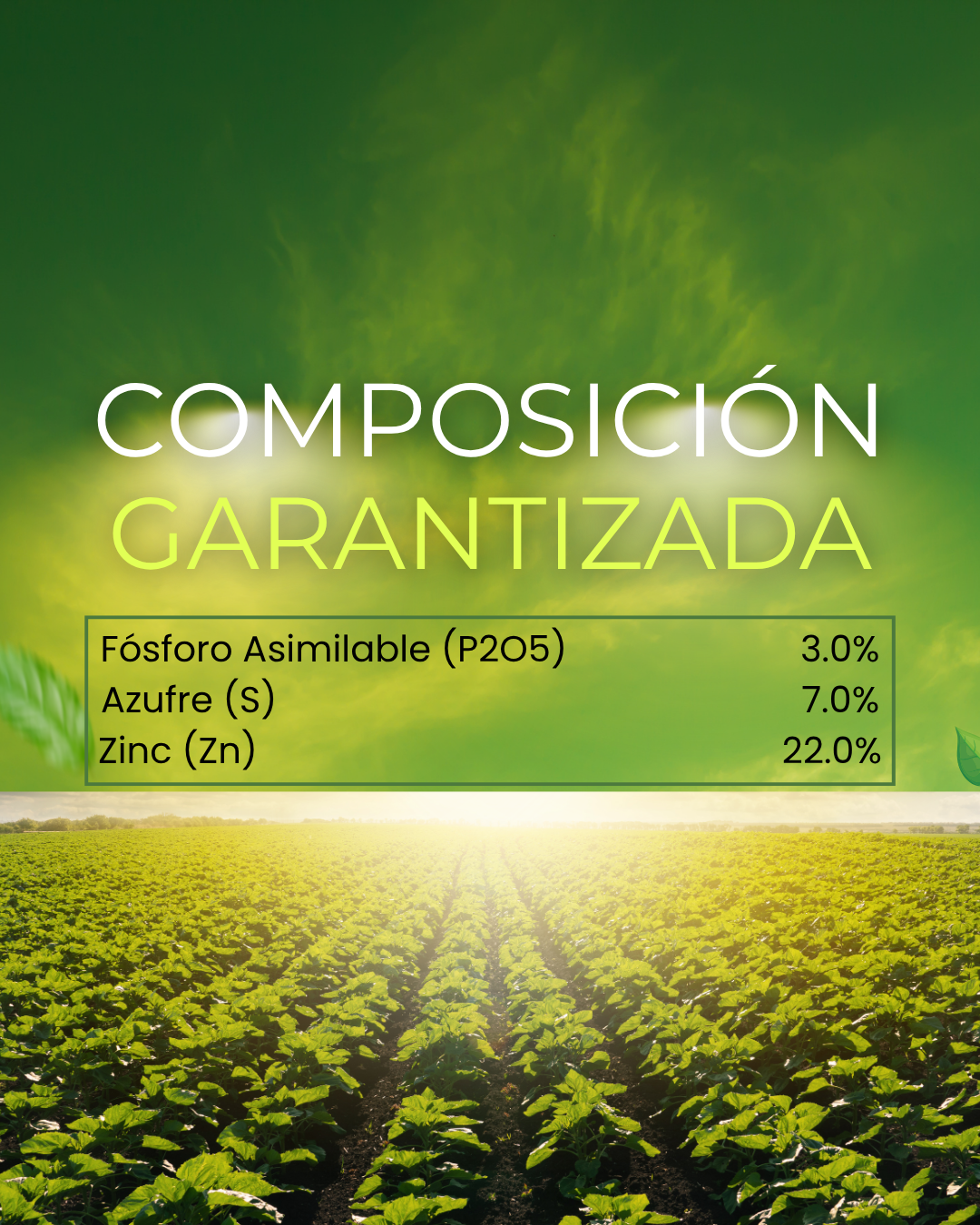 Es un fertilizante para aplicación al suelo utilizadocomo fuente de Zinc, Azufre y Fósforo para corregir las deficiencias de estos elementos presentes en la mayoría de suelos agrícolas.